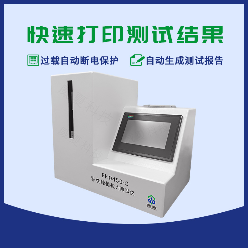 FH0450-C導(dǎo)絲峰值拉力測(cè)試儀是由威夏科技提供的專業(yè)用于國(guó)家檢驗(yàn)生產(chǎn)廠家產(chǎn)品性能的高效檢測(cè)設(shè)備。