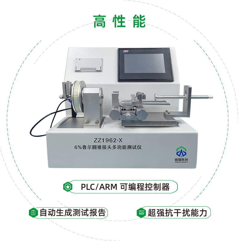 ZZ1962-X 6%魯爾圓錐接頭多功能測試儀是檢驗(yàn)魯爾接頭各項(xiàng)性能的高效智能檢測儀器;是鑒定醫(yī)療器械魯爾接頭性能的重要手段之一。測試操控范圍包括: 公稱容量、芯桿位移、打印設(shè)定、測試、上行、下行、時(shí)間、標(biāo)定,檢定等功能設(shè)定。