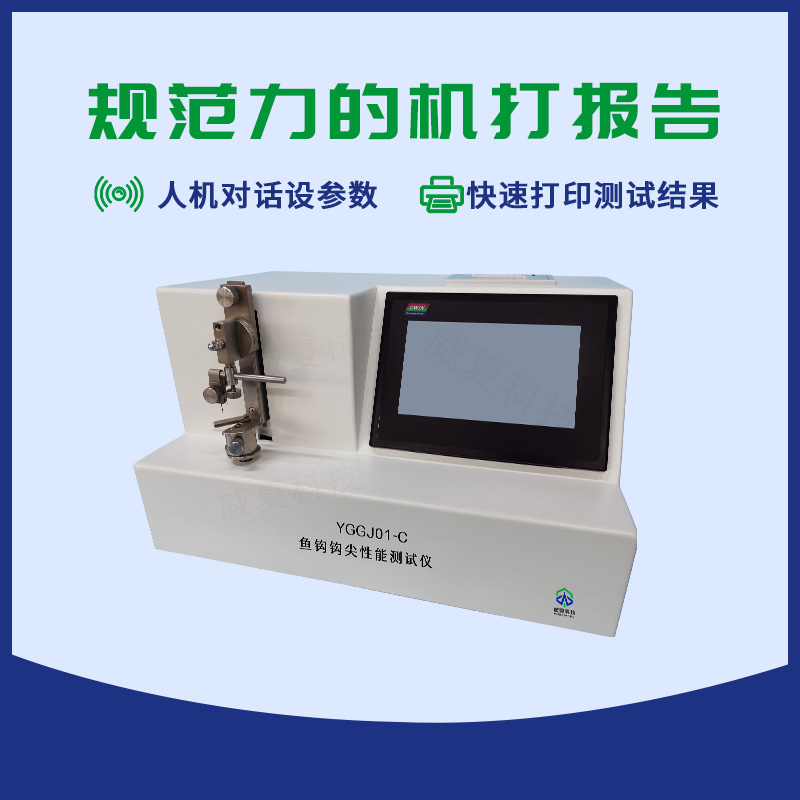 YGGJ01-C魚(yú)鉤鉤尖性能測(cè)試儀主要用于測(cè)定魚(yú)鉤的各項(xiàng)物理性能,是鑒定魚(yú)鉤性能的重要手段之一。