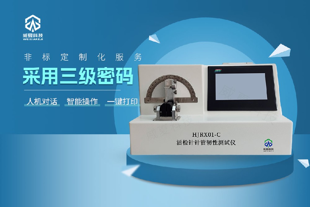 活檢針在性能檢測方面,活檢針需經(jīng)過剛性、彈性、刺穿力、連接強(qiáng)度及取樣可靠性等項(xiàng)目測試,以驗(yàn)證其在臨床使用中的安全性與穩(wěn)定性。驗(yàn)活檢針的韌性性能推薦威夏科技自主研發(fā)的HJRX01-C活檢針針管韌性測試儀,根據(jù)行業(yè)標(biāo)準(zhǔn)精心設(shè)計(jì),匠心智造,甄選品質(zhì)!活檢針韌性測試儀···